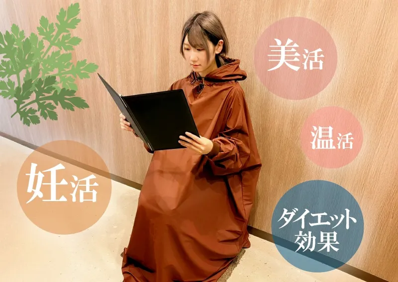 よもぎとハーブの蒸気で体を芯から温めます。大量発汗で代謝UP、デトックス効果により美肌効果も◎・妊活、温活、血行促進、冷え対策にオススメです♪